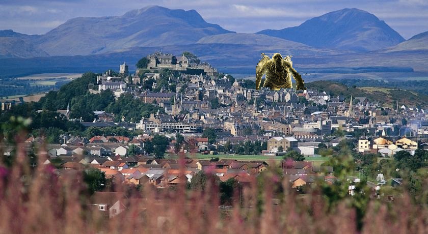 Lovecraftian town-monster Gargunnock running amok in Central Belt