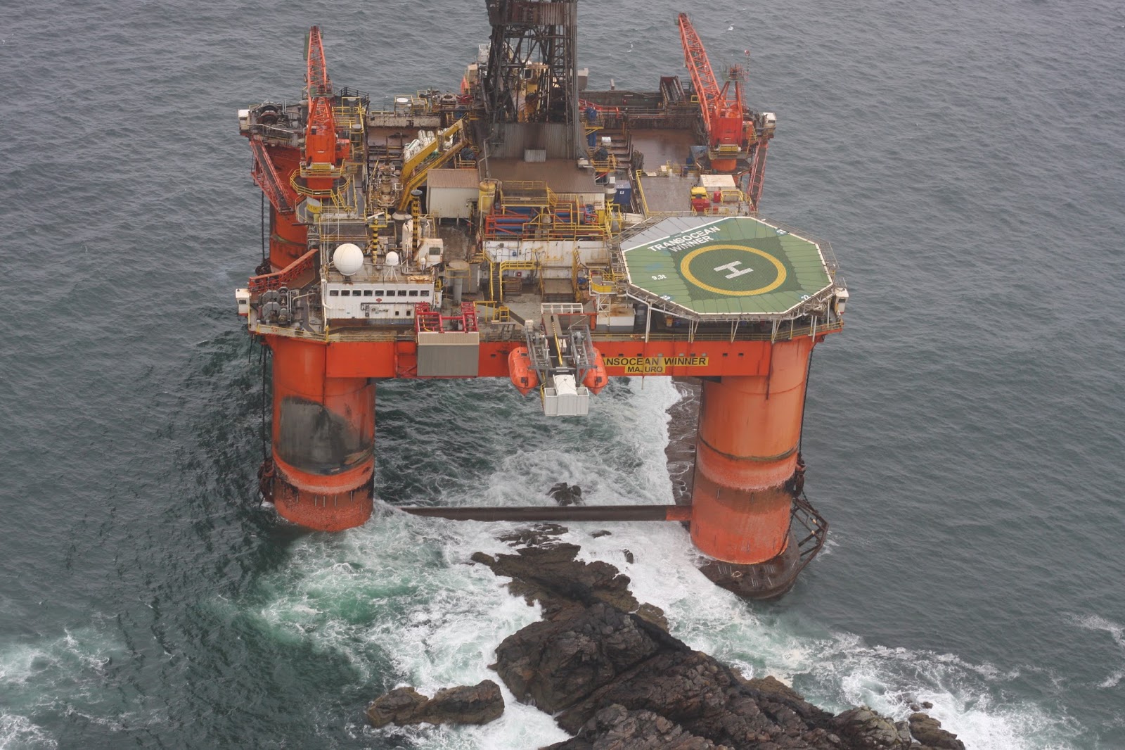 The salvage team tasked with boarding and assessing the stricken Scottish oil rig Transocean Winner have revealed that a “likely confused and belligerent” Greenland shark was responsible for the damage, based on old brown teeth found embedded in an oil tank decorated by a vast visage of a young boy floundering on a lilo.